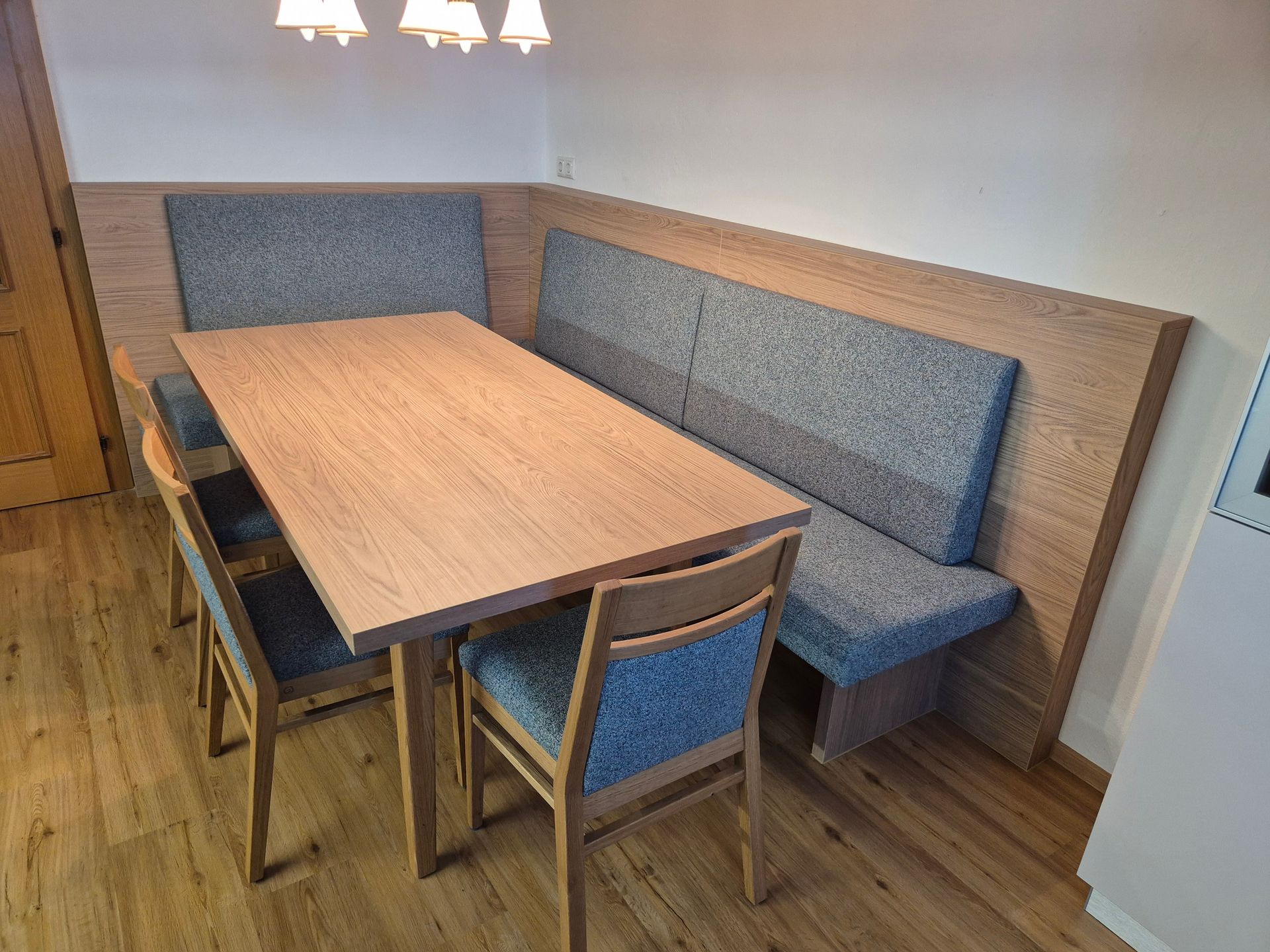In wenigen Werktagen können Sie wieder gemütlich bei Tisch sitzen und Ihren neu gepolsterten Essplatz genießen.